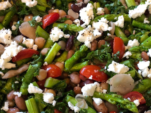 Mix the beans, asparagus, cherry tomatoes, kale in a bowl