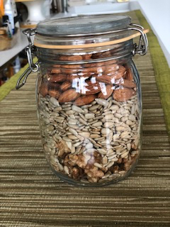 Good Fats – Cold Pressed Olive oil, Nuts (brazil nuts, almonds, walnuts) and Seeds (pumpkin, sunflower and sesame seeds)