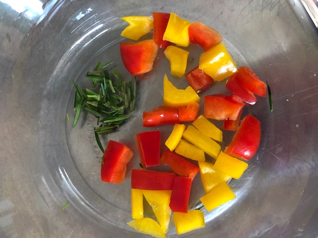 6. Combine 1-4 when the bell pepper and cherry tomatoes have cooled