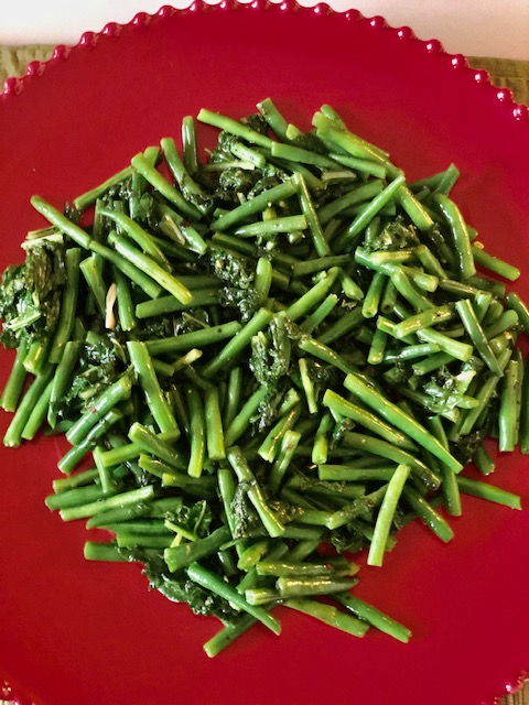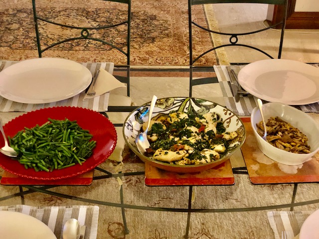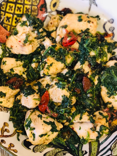 French beans with kale, chicken with spinach, mushrooms