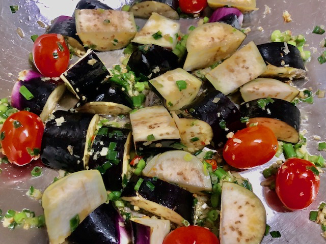 10. Combine the grilled zucchini, pumpkin with the tofu