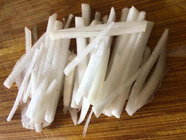 The Daikon radish in this soup is very high in vitamin C, potassium, and phosphorus. It has beneficial enzymes that help in digestion as well as phytonutrients that help fight chronic illnesses. Daikon radish has antibacterial, anti-inflammatory, antiviral and diuretic properties. It is useful to know that raw daikon juice can aid in the healthy functioning of the respiratory system by dissolving mucus and phlegm. So, when you are down with a cold do try having daikon to help relieve your symptoms.