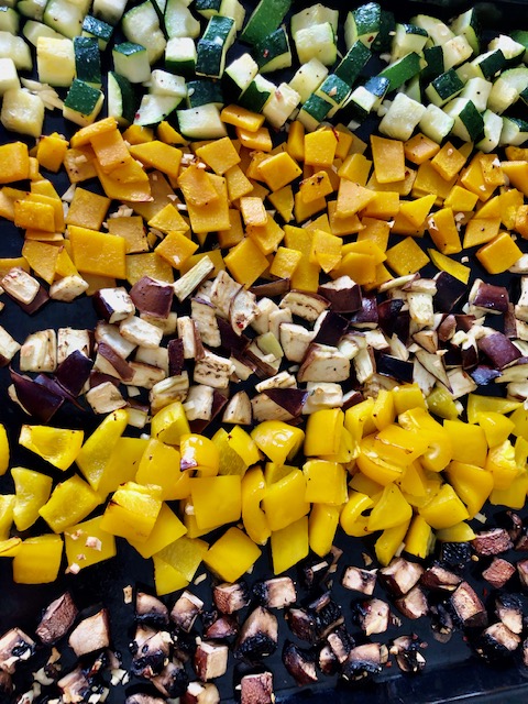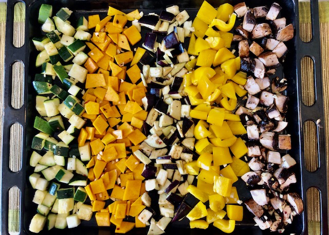 1. Chop the pumpkin, eggplant, pepper, zucchini, mushrooms and garlic
