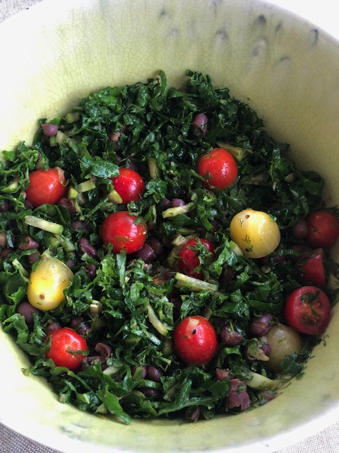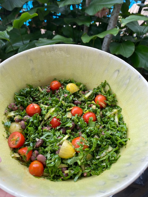 Cucumber, dill, cherry tomatoes, adzuki beans and kale