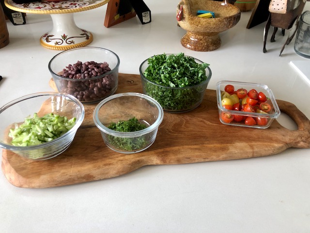 Adzuki beans, kale, cherry tomatoes, cucumber and dill